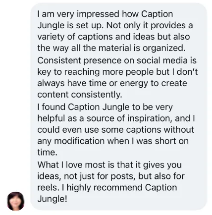 "I would recommend Caption Jungle to ANYONE if you are stuck creating content!"