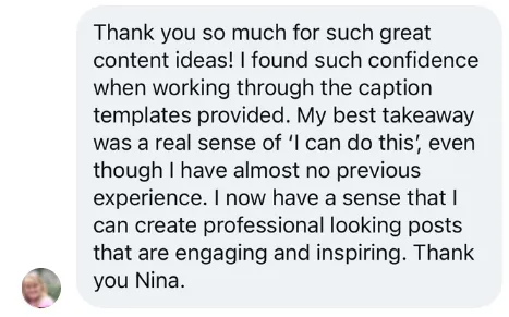 Wow! As a busy entrepreneur keeping on top of my social media can feel like an entire new job, well because it is. That is until I came across Nina's ‘Caption Jungle’ bundle. So many awesome conversation starters and I loved the ability to download graphics straight into my Canva account for branding in my company colors. Can’t wait to dig into it even more. Thank you!